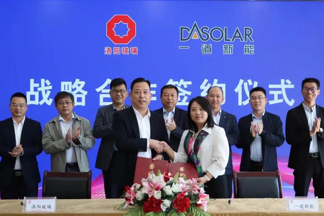 近日,一道新能源科技(衢州)有限公司与洛阳玻璃股份有限公司在中建材(宜兴)新能源有限公司举行战略合作签约仪式。一道新能董事长兼总裁刘勇与洛玻股份执行总裁章榕出席仪式并举行工作会谈。洛玻股份副总裁兼光伏玻璃事业部总经理、宜兴新能源总经理杨伯民与一道新能采购总监周芹代表双方签署协议。根据合同约定,自协议签署之日至2024??0日期间,洛阳玻璃将向一道新能销售合?亿平米超薄光伏玻璃,预估合同总金额近50亿元人民币、br/>