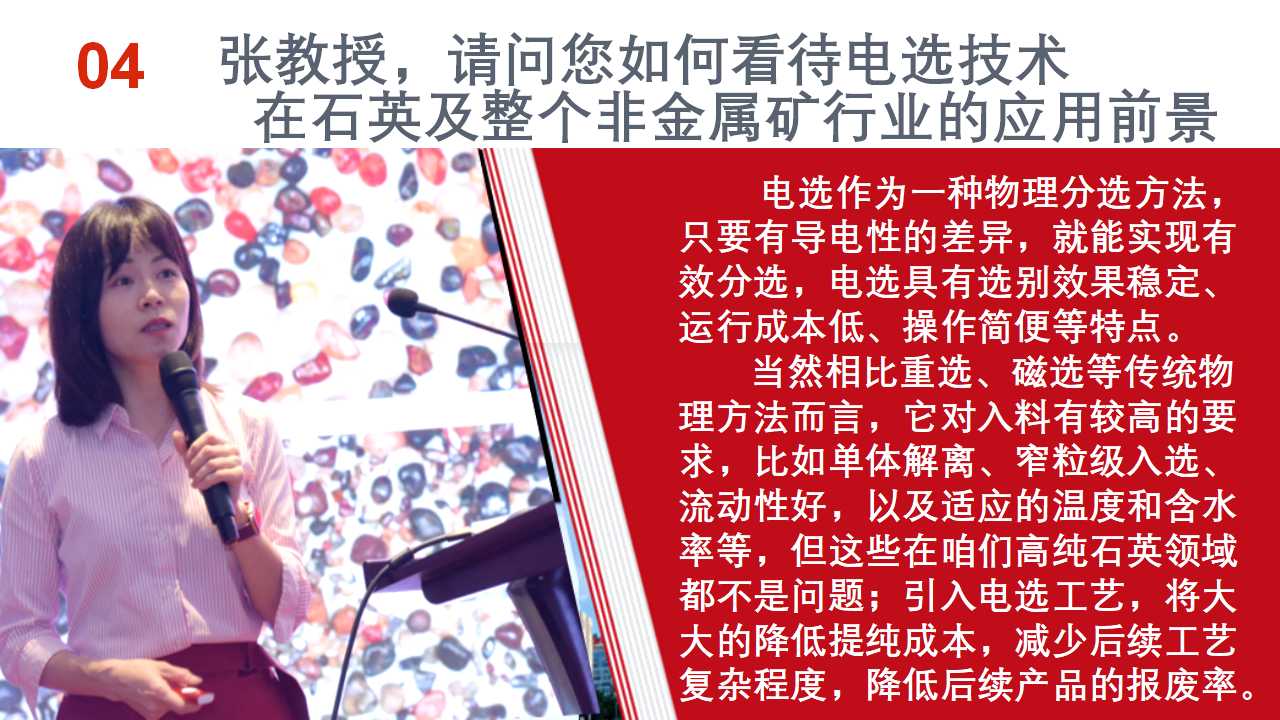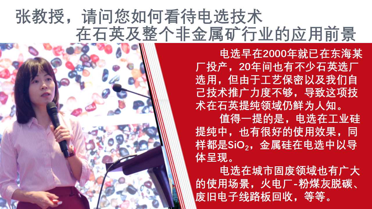 编者按9/strong>作为中国粉体网为石英人打造的一年一届的品牌盛会,“全国石英大会”曾创造了国内单品种非金属矿物材料会议的最大规模纪录!同时也见证了近些年石英砂市场的高涨和众多优秀企业的成长壮大!在产业链新老朋友的大力支持下,第六届全国石英大会马上要在江苏徐州召开了!来自中国五矿长沙矿冶研究院的张华教授表达了对本届大会的热切期待,并就电选技术在石英提纯领域中的应用在会前接受了粉体网的专访、/p>