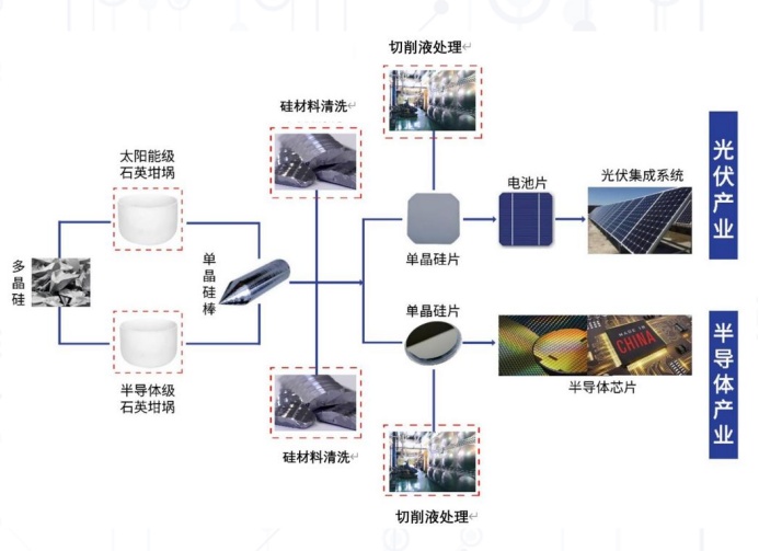 硅材料清洗服务:主要对单晶硅拉棒所需的多晶料进行加工清洗,并对单晶硅棒生产过程中产生的头尾、边皮、埚底等硅材料进行回收清洗,处理后的产品再供给硅单晶/多晶企业使用,其目的是使硅材料表面清洁无杂质污染,从而保证硅材料纯度及品质、/p>