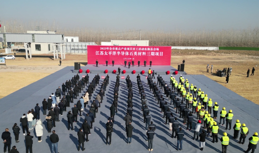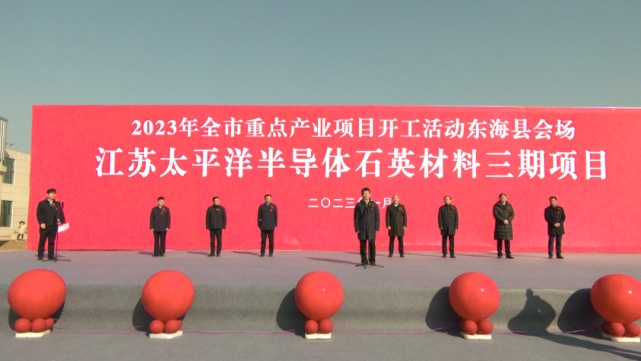 此次在东海县主会场开工的江苏太平洋半导体石英材料(三期)项目,由江苏太平洋石英股份有限公司投资建设,总投?2亿元,新建生产车间、仓储及辅助建筑?2万平方米,购置生产、检验包装及公辅等设备共?43台(套),可形成年产6万吨高纯石英砂?5万吨半导体级高纯石英砂?800吨半导体石英制品的生产能力。项目达产后,预计可年新增销?0亿元,年新增税收6亿元,新增就业岗?00余个,将进一步巩固和提升太平洋石英在世界石英行业的地位和影响力、/p>