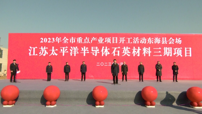 此次在东海县主会场开工的江苏太平洋半导体石英材料(三期)项目,由江苏太平洋石英股份有限公司投资建设,总投?2亿元,新建生产车间、仓储及辅助建筑?2万平方米,购置生产、检验包装及公辅等设备共?43台(套),可形成年产6万吨高纯石英砂?5万吨半导体级高纯石英砂?800吨半导体石英制品的生产能力、/strong>