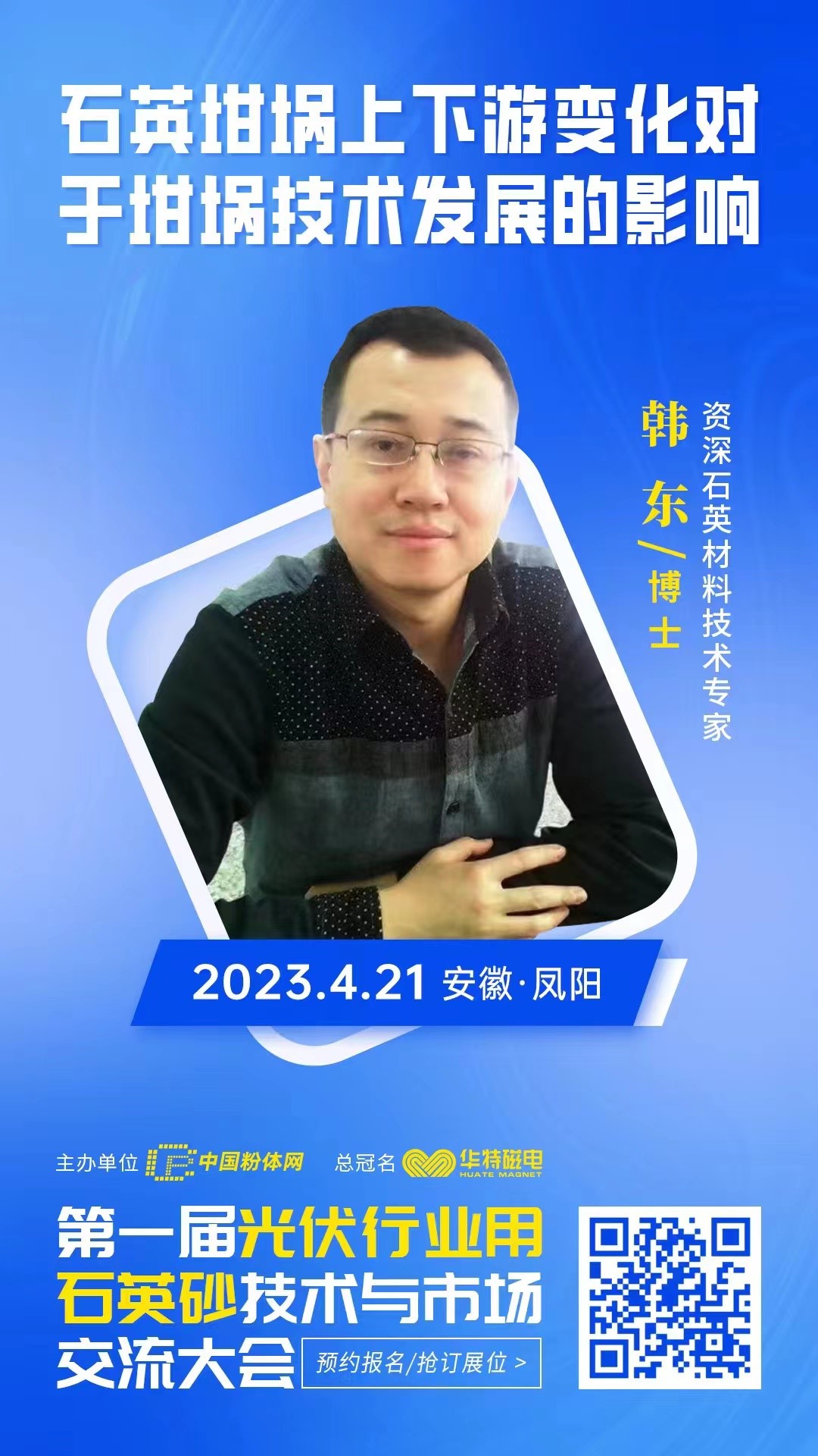 2023??1?/strong>+span style="color: rgb(192, 0, 0);">中国粉体罐/strong>将在安徽凤阳举办“第一届光伏行业用石英砂技术与市场交流大会“/strong>。资深石英材料技术专宵strong>韩东博士将带来题丹span style="color: rgb(192, 0, 0);">《石英坩埚上下游变化对于坩埚技术发展的影响《/strong>的报告、/p>