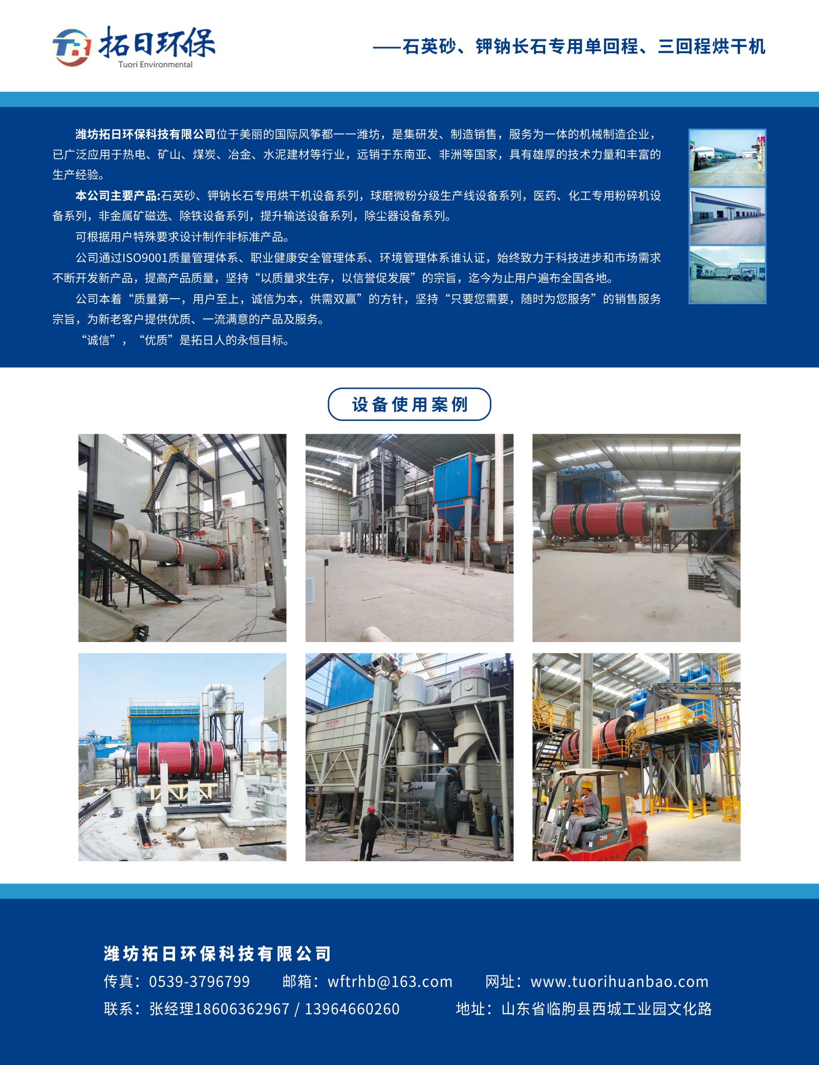 潍坊拓日环保科技有限公司位于美丽的国际风筝之都——潍坊,是集研发、制造、销售、服务为一体的机械制造企业,已广泛应用于热电、矿山、煤炭、冶金、水泥建材等行业,远销于东南亚、非洲等国家,具有雄厚的技术力量和丰富的生产经验、/p>