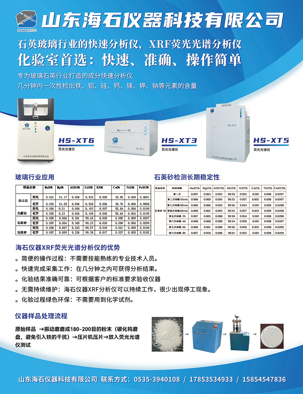 山东海石仪器科技有限公司 是一家专业从事X荧光光谱仪研发、生产和销售的高新技术企业,为石英玻璃客户提供快速精准的化学成分分析解决方案 公司主要生产HS-XT1、HS-XT2、HS-XT3、便携HS-XS1系列X荧光光谱仪、/p>