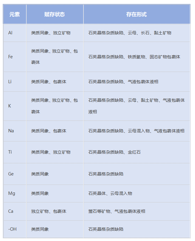 石英晶体在形成过程中,一些元素会替代硅元素进入石英晶体中,形成了石英的结构性杂质。这些杂质含量虽然很低,但从石英中分离难度大,是制约高纯石英质量最关键性因素、/p>
