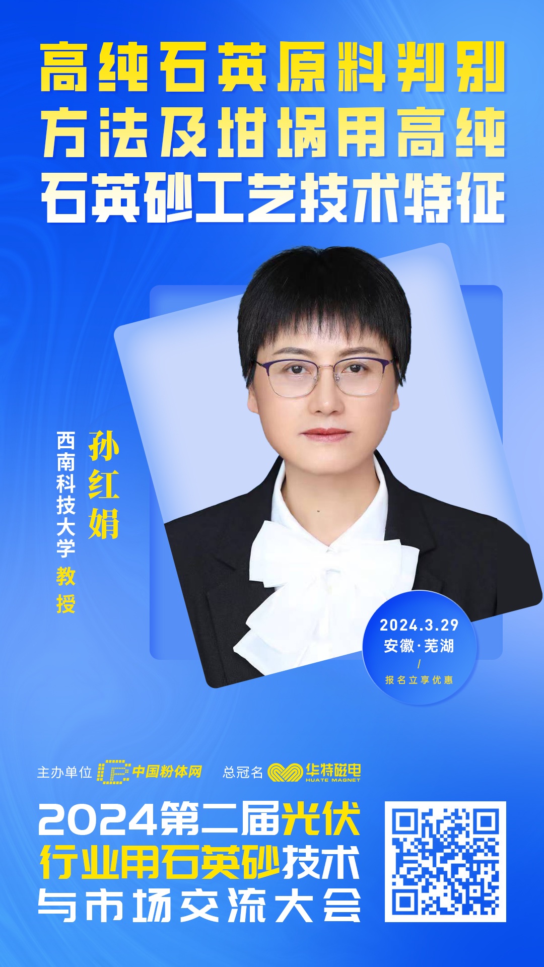 综上,在现有技术条件下,能被用于加工高纯石英的天然石英矿物应具备以下矿物学特征:石英晶粒化学成分纯净,晶格杂质少甚至是没有,嵌布粒度大,矿物包裹体和流体包裹体少,共伴生脉石矿物少等。此外,除了明确合适的高纯石英原料之外,还需经过一系列的提纯工艺最终获得符合应用领域目标要求的高纯石英砂产品、strong>2024??9?/strong>,由中国粉体网主办的?024第二届光伏行业用石英砂技术与市场交流大会“/strong>将在安徽芜湖召开+strong>西南科技大学孙红娟教掇/strong>将做《高纯石英原料判别方法及坩埚用高纯石英砂工艺技术特征《/strong>的报告,届时,她将对石英坩埚用高纯石英原料的评价标准及加工工艺进行详细解读、/p>
