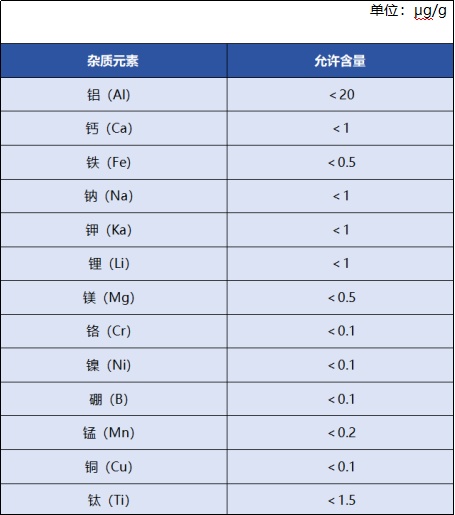 《半导体单晶硅生长用石英坩埚生产规范标准》石英砂杂质元素含量