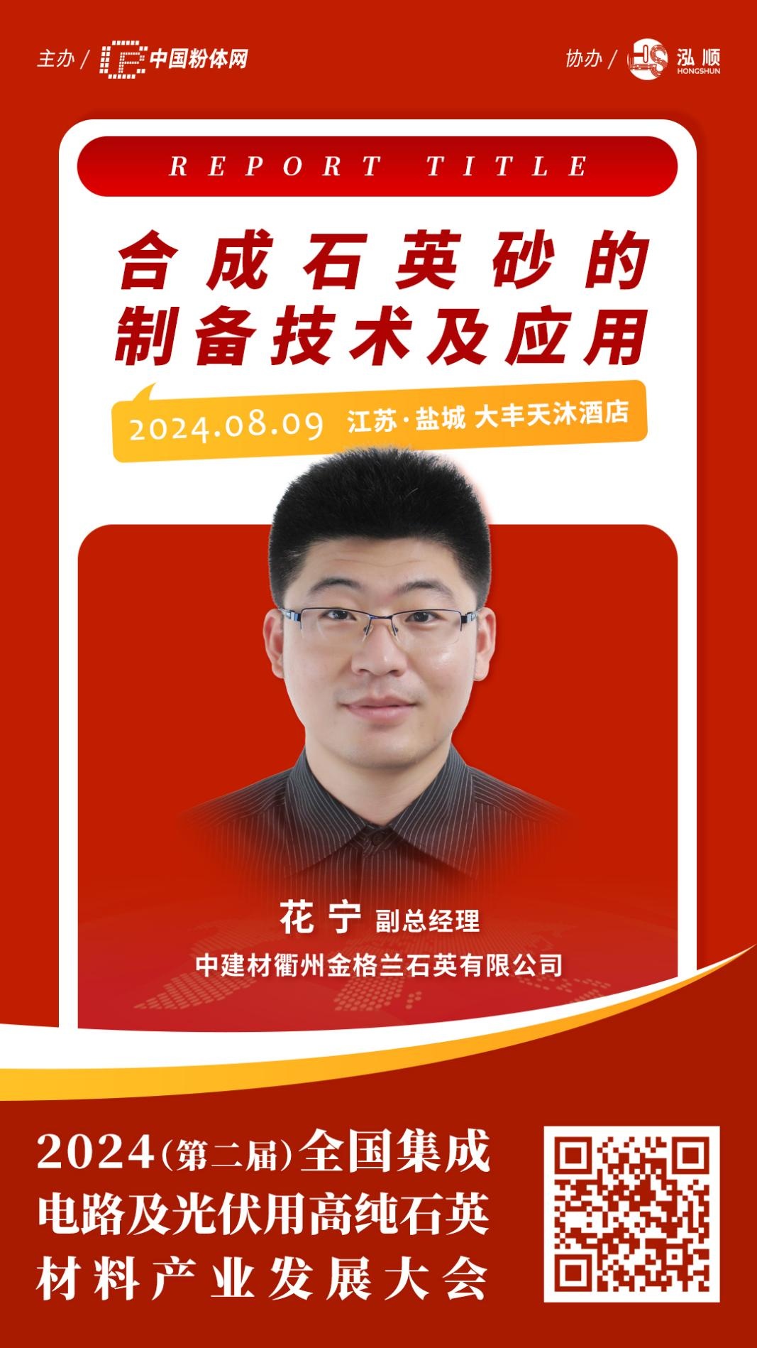 2024??日,由中国粉体网主办皃span style="color: rgb(192, 0, 0);">?024(第二届)全国集成电路及光伏用高纯石英材料产业发展大会“/strong>将在江苏盐城召开+strong>中建材衢州金格兰石英有限公司皃strong>花宁副总经理将偙strong>《合成石英砂的制备技术及应用《/strong>的报告,届时,他将结合公司实际研发经验,详细解读合成石英砂的生产技术及应用领域、/p>