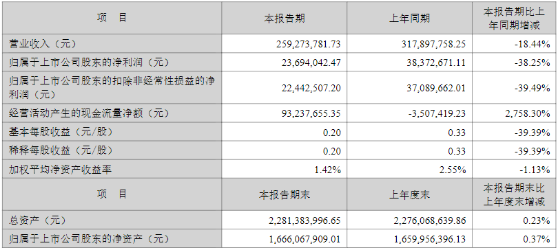 中国粉体网讯近日,中旗新材发?024年半年报。报告显示,2024上半年,公司实现营业收入2.59亿元,同比减?8.44%,实现归属于上市公司股东的净利润2369.75万元,同比减?8.25%、br/>