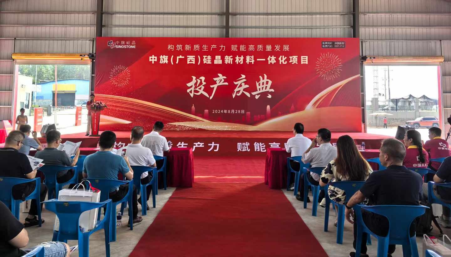 2024??8日,中旗(广西)硅晶新材料一体化项目投产庆典隆重举行、/span>正式开启中旗新材以自有矿山为基础,硅基粉料为核心的企业“第二增长曲线”、/p>
