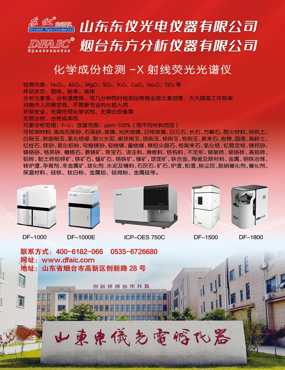 多年来,公司的研究团队已突破多波段闪耀光栅刻蚀技术和工艺、等离子体源制造技术、多碱阴极蒸镀技术、SDD双面光刻技术和工艺、低膨胀材料的光路技术等一系列关键技术,相继开发了直读光谱仪、荧光光谱仪、ICP-OES光谱仪、LIBS激光光谱仪,四大系列十几个型号的分析仪器,且以上仪器全部投放市场。其中DF-200直读光谱仪获得省机械协会一等奖和省科技进步二等奖,DF-1000X荧光光谱仪获省机械协会二等奖和市科技进步三等奖、/p>