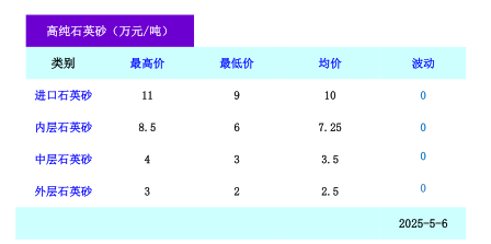 中国粉体网讯国产高纯石英砂的价格,以光伏坩埚中层砂为例,2023年巅峰时期均价在21万元/吨,2024?月高纯石英砂价格开始一路下滑,至年底时均价已降?.5万元/吨,暴跌了约83%,且该价格已徘徊数月之久、未见有突破、br/>