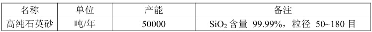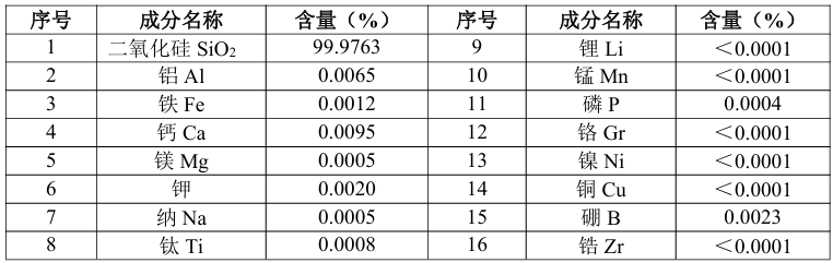 拟建项目石英原料检测一览表