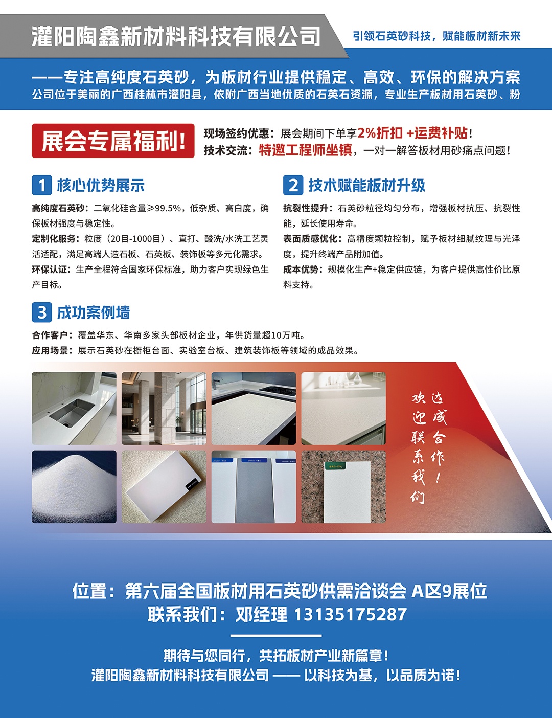由中国粉体网主办的‛span style="color: rgb(255, 0, 0);">2025第六届全国板材用石英砂供需洽谈伙/span>”将亍span style="color: rgb(255, 0, 0);">8??/span>?span style="color: rgb(255, 0, 0);">山东枣庄举办+span style="background-color: rgb(255, 255, 255); text-indent: 32px; color: rgb(34, 34, 34); letter-spacing: 1px;">灌阳陶鑫新材料科技有限公司邀您一同参加、/strong>