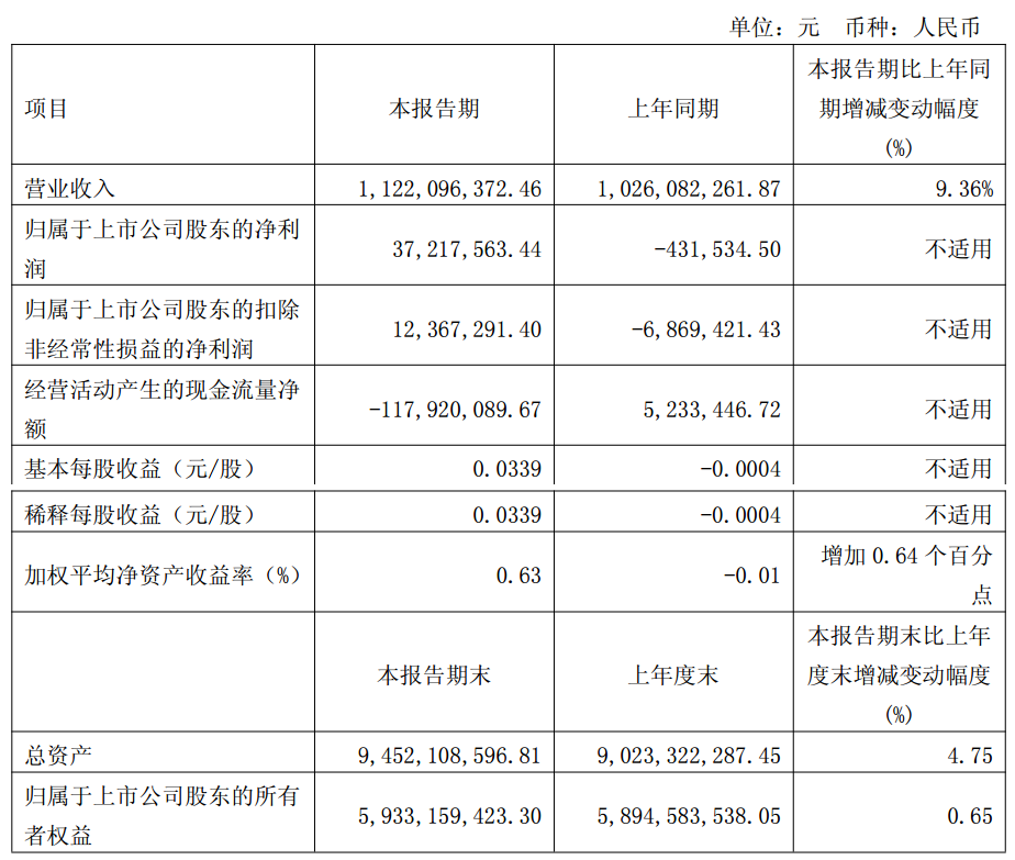 2025年一季度关键财务指标 营收11.22亿元(同?9.36%),净利润3721.76万元、/span>