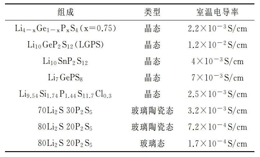 硫化物固态电解质的离子电导率