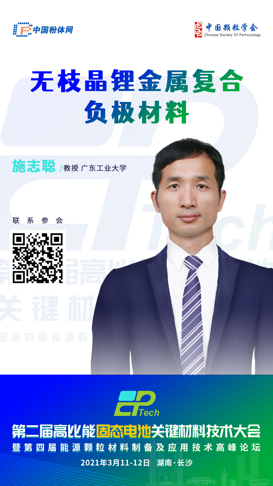 2021??1-12日,由中国粉体网、中国颗粒学会能源颗粒材料专委会主办,长沙矿冶研究院先进材料研究所协办皃span style="color: rgb(192, 80, 77);">第二届高比能固态电池关键材料技术大伙/strong>将在长沙吉美国际会展酒店隆重举行,届时,施志聪教掇/span>将带来报呉span style="color: rgb(192, 80, 77);">《无枝晶锂金属复合负极材料研究《/strong>,与参会嘉宾分享相关研究成果、/p>