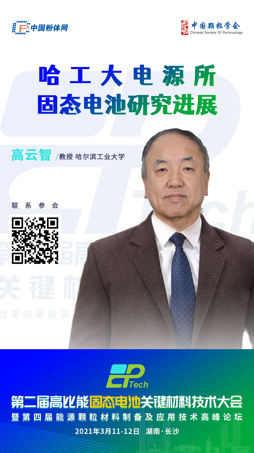 2021??1-12日,由中国粉体网、中国颗粒学会能源颗粒材料专委会主办,长沙矿冶研究院先进材料研究所协办皃strong>第二届高比能固态电池关键材料技术大伙/span>将在长沙吉美国际会展酒店隆重举行,届时,高云智教掇/strong>将带来报呉strong>《哈工大电源所固态电池研究进展《/span>,与参会嘉宾分享相关研究成果、/p>