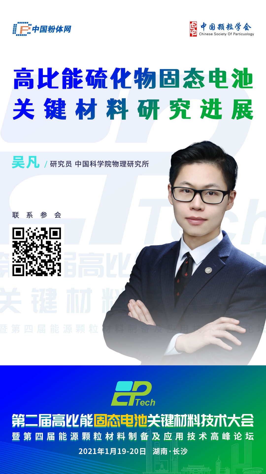2021??1-12日,由中国粉体网、中国颗粒学会能源颗粒材料专委会主办,长沙矿冶研究院先进材料研究所协办皃strong>第二届高比能固态电池关键材料技术大伙/span>将在长沙吉美国际会展酒店隆重举行,届时,中国科学院物理研究所吴凡研究员将带来报告《高比能硫化物固态电池关键材料研究进展《/span>,与参会嘉宾分享相关研究成果、/p>