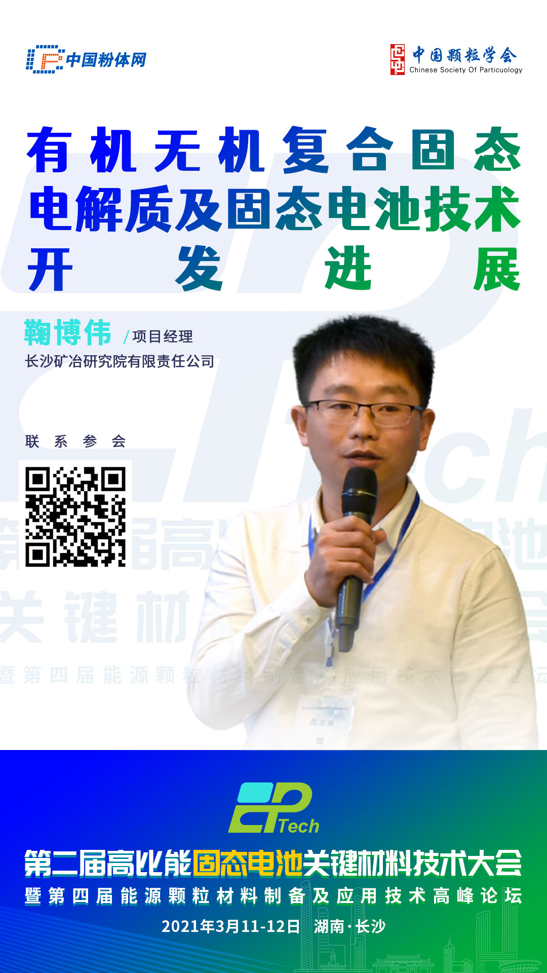 2021??1-12日,由中国粉体网、中国颗粒学会能源颗粒材料专委会主办,长沙矿冶研究院先进材料研究所协办皃span style="color: rgb(192, 0, 0);">第二届高比能固态电池关键材料技术大伙/strong>将在长沙吉美国际会展酒店隆重举行,届时,长沙矿冶研究院有限责任公司先进材料研究所的主任研究员鞠博伞/strong>将带来报呉span style="color: rgb(192, 0, 0);">《有?无机复合固态电解质及固态电池技术开发进展《/strong>,与参会嘉宾分享相关研究成果、/p>