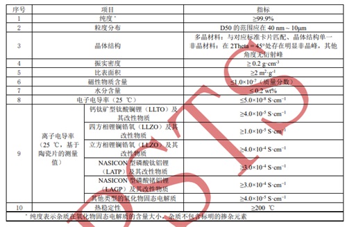 1 固态锂电池用无机氧化物固态电解质粉体的技术参数指标要汁/p>