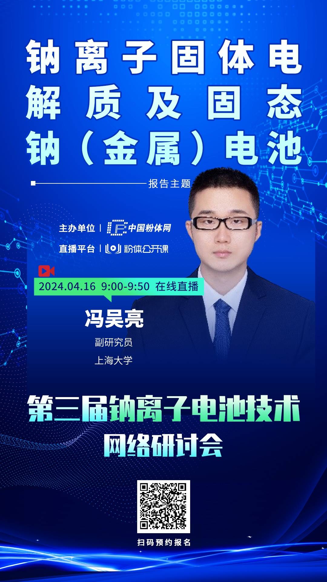 粉体公开课将??6号组织召开第三届钠离子电池技术网络研讨会,共同探讨最新产业技术发展动态。特邀上海大学冯吴亮副研究员带来:钠离子固体电解质及固态钠(金属)电池