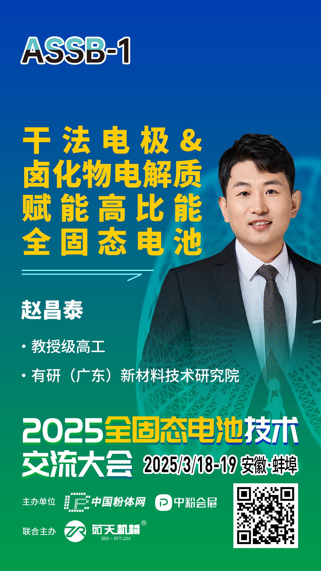 针对固态电池相关的技术、材料、市场及产业等方面的问题+strong>中国粉体罐/strong>将于2025??8-19?/strong>?strong>安徽·蚌埠举办2025全固态电池技术交流大会暨第一届干法电极技术研讨会。为致力于固态电池技术开发的企业,科研院校,以及新能源汽车、储能、消费电子等终端企业提供信息交流的平台,开展产、学、研合作,助推固态电池产业化发展。届时,来自有研(广东)新材料技术研究院皃strong>赵昌泰教授级高级工程帇/strong>将作题为《干法电?amp;卤化物电解质赋能高比能全固态电池《/strong>的报告、/p>