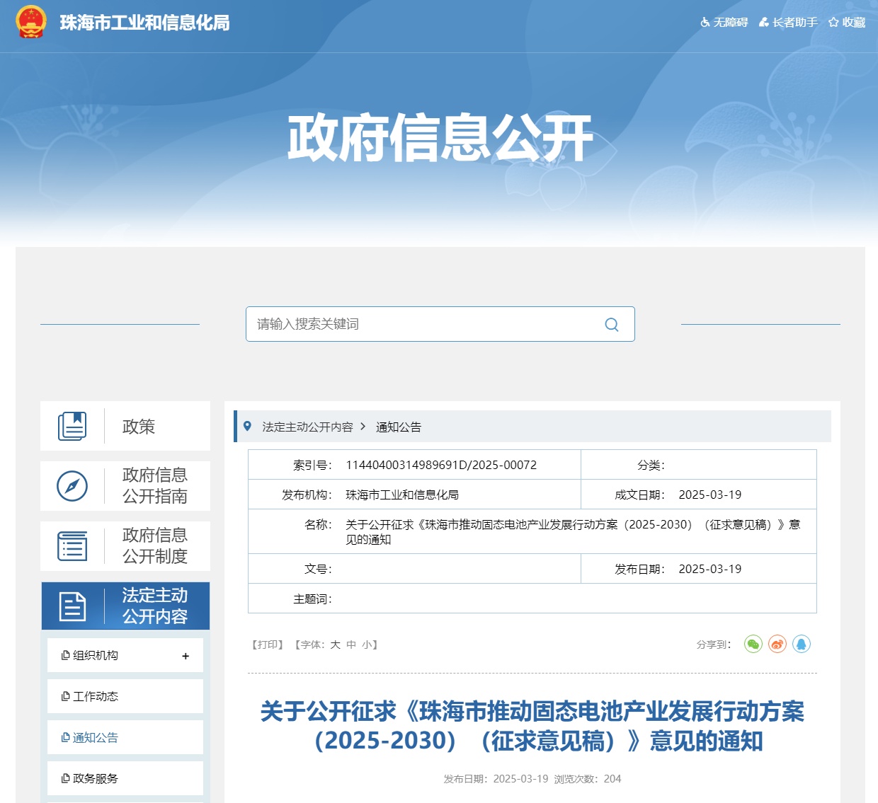 中国粉体网讯3?9日,珠海市工业和信息化局发布关于公开征求《珠海市推动固态电池产业发展行动方案(2025-2030)(征求意见稿)》意见的通知。要求助力构建清洁低碳、安全高效的能源体系,紧抓固态电池产业发展的战略机遇期,推动创新链、产业链、资金链、人才链深度融合,推动固态电池技术进步、规模壮大、模式拓展,着力提升固态电池产业竞争力,培育固态电池产业集群,打造固态电池产业集聚发展高地、br/>