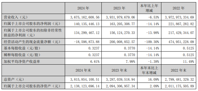 4?日,金龙羽发?024年年度报告,报告期内,公司实现营业收?6.75亿元,比上年同期减少6.53%;实现归母净利润1.4亿元,比上年同期减少14.14%。公司营业收入、净利润较去年同期下降的主要原因是工程建设放缓以及行业竞争加剧,同时公司设立新能源公司专门从事固态电池产业化,投入增加导致亏损扩大、/p>