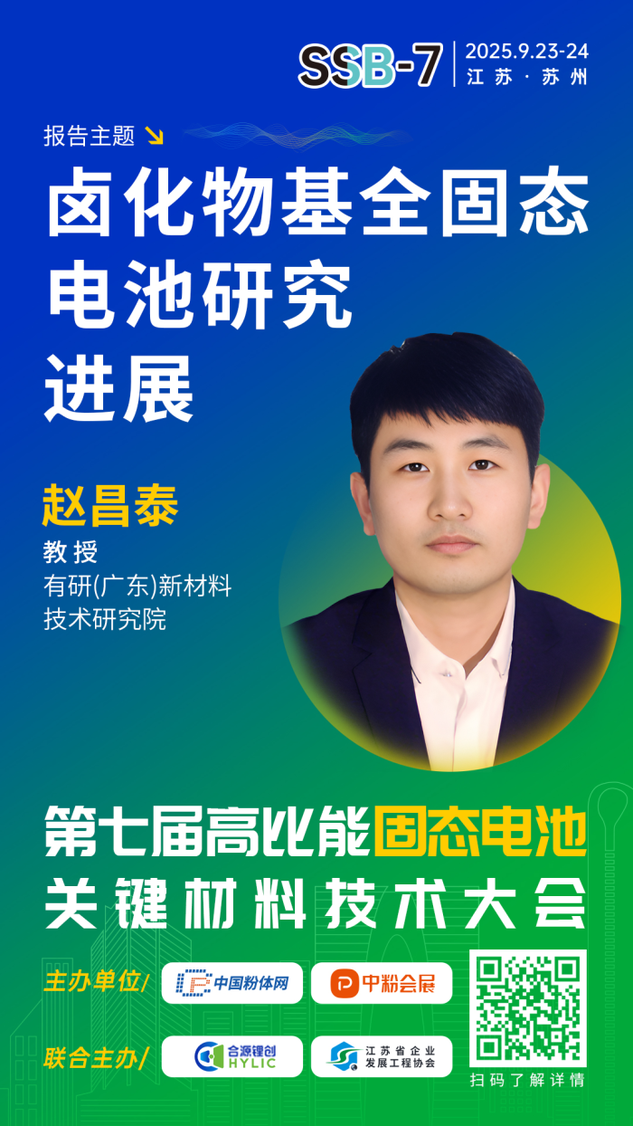 针对固态电池产业化发展现状+strong>中国粉体罐/strong>联合合源锂创、江苏省企业发展工程协会将于2025??3-24?/strong>?strong>江苏· 苏州举办第七届高比能固态电池关键材料技术大伙/strong>。为致力于固态电池技术开发的企业,科研院校,以及新能源汽车、储能、消费电子等终端企业提供信息交流的平台,开展产、学、研合作。届时,来自有研(广东)新材料技术研究院皃strong>赵昌泰教掇/strong>将作题为《卤化物基全固态电池研究进展《/strong>的报告、/p>