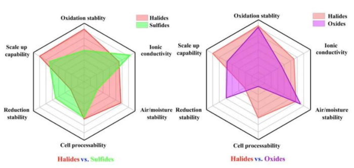 硫化物、氧化物和卤化物固态电解质的性能对比国/p>