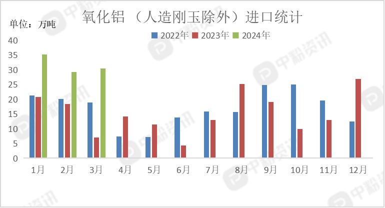 进口9/span>海关统计?024?月我国氧化铝(人造刚玉除外)当月进口量为30.38万吨,累计进口量?4.73万吨,进口量环比上涨3.97%,进口量同比上涨334.00%,累计进口量比去年同期上?05.85%、/span>