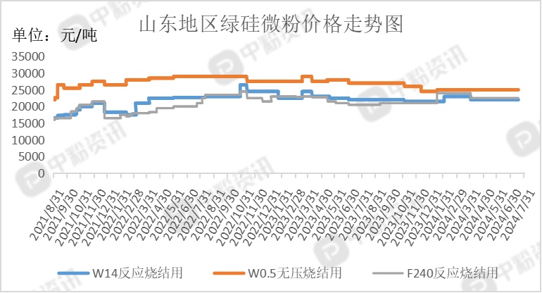 市场概述:近期碳化硅市场价格波动较小,整体持稳为主。据粉体网了解,山东地区F240反应烧结主流价在22500?吨左右,W14反应烧结价格?2000?吨左右,90碳化硅细粉(SiC?0%)主流价?500?吨左右,97碳化硅细粉(SiC?6.7%)主流价?500?吨左右。黑硅市场弱稳震荡运行,价格持续疲软。宁夏地区黑硅一级品原块价格?300?吨左右,二级品在5300?吨左右。绿硅原块受原料克依焦影响下价格?2000?吨左右。目前在高温天气的影响下,碳化硅企业开工受限,多按订单生产,甘肃地区开工率?2.5%左右、/span>