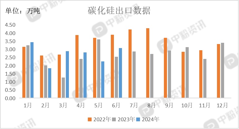 出口方面,海关统计,2024?月我国碳化硅当月出口量为3.07万吨,累计出口量?6.28万吨,出口量环比上涨36.44%,出口量同比上涨20.87%,累计出口量比去年同期上?.03%、/span>