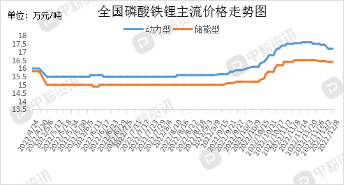 下游方面9/span>本周,国内动力型磷酸铁锂市场主流价格?7.2万元/吨左右,环比上周下跌1.43%,储能型磷酸铁锂主流出厂价为16.4万元/吨左右,环比上周下跌0.30%,本周价格下行走势为主,看跌情绪明显,市场淡稳运行。当前企业多以交付前期签约长协订单为主,工厂装置生产正常化进行,下游需求市场提振不足,部分企业有减产计划,预计后期磷酸铁锂供应量呈减少趋势。上游原材料端碳酸锂周内价格继续回落,磷酸铁锂成本因素支撑减弱。下游需求方面,目前备货旺季已结束,下游电池厂家多以消耗前期库存为主,采购意愿不强烈,大多持观望心态,现货市场成交热度不高。预计短时间内磷酸铁锂价格会稳中下行,市场淡稳趋势为主。(所有数据截?2?日)