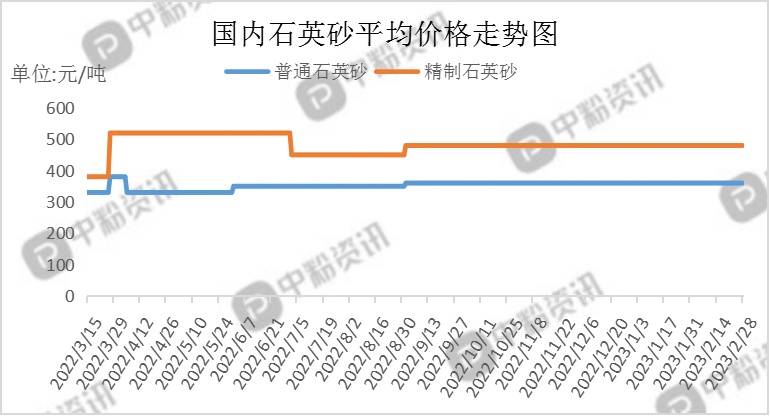 石英砂生产的主要原料是各种类型的石英矿石,在价格行情上和石英砂产品保持一致。一方面,国内石英矿石资源丰富,品种繁多,开采技术和加工技术简单,矿山企业众多,矿石供给充足;另一方面,石英矿石的价格一直保持稳定的市场状态,价格行情一直和石英砂产品的价格行情保持高度的一致,价格稳定性有保障、/span>