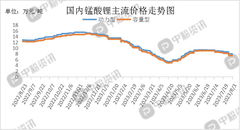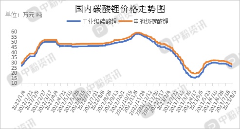 市场看空情绪浓厚,观望为主,下游采购积极性差,多询价,交投氛围一般。成本端进口锂矿持续稳中下跌,锂盐企业成本压力降低,持续严格把控原料成本。供应端,企业生产正常,供应基本维稳,其中青海盐湖产量不断增加,供应端预期增量。需求端,终端新能源汽车以及数码市场需求状况变化不大,下游正极材料企业谨慎采购,随着碳酸锂价格持续下跌,采购压价心理明显。目前来看,现货市场短期需求淡季,供需持续博弈僵持,市场价格维稳震荡下行为主。(所有数据截臲/span>8?日)