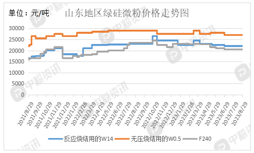 市场概述9/span>碳化硅市场趋于平稳,产品价格大稳小动,市场供应持续稳定,下游市场需求逐渐好转,目前“金九银十”没有明显利好因素,下游需求仍有增长空间。据粉体网了解,山东地区F240反应烧结主流价在20000?吨左右,W14反应烧结价格?2000?吨左右,90碳化硅细粉(SiC?0%)主流价?000?吨左右,97碳化硅细粉(SiC?6.7%)主流价?800?吨左右,黑硅方面,原块采购还是以一级品为主。宁夏地区黑硅一级品原块价格?700?吨左右,二级品在5700?吨左右。绿硅原块受原料克依焦影响下价格?3000?吨左右。前期部分企业采取减产、停产等措施来应对碳化硅市场需求疲软的状况,目前市场趋于平稳,一些企业逐步恢复开工。甘肃地区开工率?2.3%左右、/span>