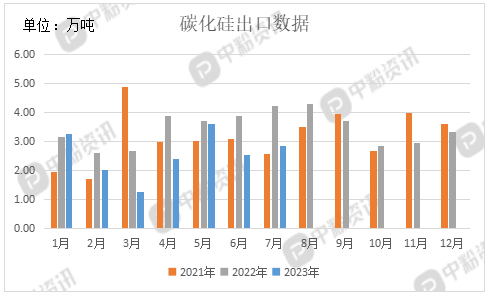 出口方面,海关统计,2023?月我国碳化硅当月出口量为2.86万吨,累计出口量?7.93万吨,出口量环比上涨12.60%,出口量同比下降32.23%,累计出口量比去年同期下?5.69%、/span>