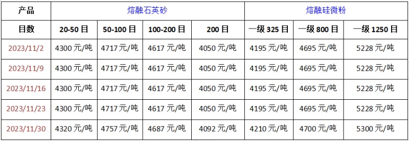 产品价格9/span>截止到目前,国内熔融石英砂主流目数均价分别为?0-50目均价在4320-4530?吨;50-100目均价在4650-4860?吨;100-200目均价在4700-5000?吨;200目均价在4030-4310?吨。国内熔融硅微粉主流目数均价分别为:一?25目均价在4100-4530?吨;一?00目均价在4400-4850?吨;一?250目均价在5100-6050?吨、/span>