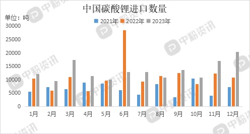 进口9/span>海关统计?023?2月我国碳酸锂当月进口量为20336.27吨,累计进口量为158749.41吨,进口量环比上?9.34%,进口量同比上涨86.98%,累计进口量比去年同期上?6.65%、/span>