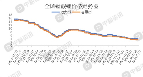 市场概述9/span>1月份,正极材料市场走势依旧较为弱势,走势平缓,价格没有大幅度波动,月末锰酸锂价格小幅度上调。截至目前,国内动力型磷酸铁锂市场主流报价为4.35万元/吨,储能型磷酸铁锂市场成交价?万元/吨左右;动力型锰酸锂主流出厂价为4.1万元/吨,容量型锰酸锂市场主流报价?.6万元/吨。目前新增订单数量不多,龙头企业按单生产为主,主供前期合约客户,大部分中小型企业已进入休假状态,停工停产,市场整体开工率水平低位。上游产品碳酸锂市场整体运行维稳,交投氛围低迷,成本端缺少利好因素支撑,下游需求端来看,下游市场观望心态较浓,企业节前主要以清库存、刚需采购为主,现货市场成交有限。预计短期内市场难有改善,维持弱稳运行可能性较大、span style="font-size: 14px; font-family: 微软雅黑;">(所有数据截??1日)