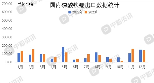 海关统计?023?2月我国磷酸铁锂当月出口量?46.23吨,累计出口量为1164.52吨,出口量环比下?0.43%,出口量同比下跌3.37%,累计出口量比去年同期上?.80%?nbsp;