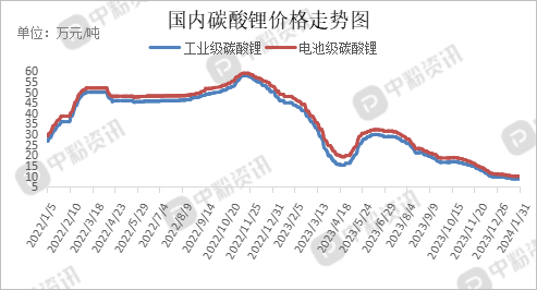上游市场行情9/span>近期,国内碳酸锂现货市场整体运行维稳,市场交投氛围持续低迷,报价暂稳、span style="font-size: 14px; font-family: 微软雅黑;">目前,工业级碳酸锂主流出厂报价在8.86万元/吨左右,电池级碳酸锂主流市场价格?0.06万元/吨左右。据了解,下游需求支撑不足,采买意愿差,部分下游企业有备货意愿,但供需博弈僵持下,仍观望市场为主,临近春节市场成交氛围整体低迷,市场情绪悲观,预计短期内碳酸锂现货市场难有改观,持续弱稳运行为主。(所有数据截??1日)