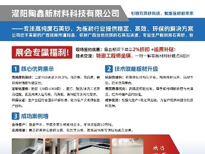 灌阳陶鑫新材料与您相约枣庄!第六届全国板材用石英砂供需洽谈伙/p>2025?7?1?nbsp;更新
