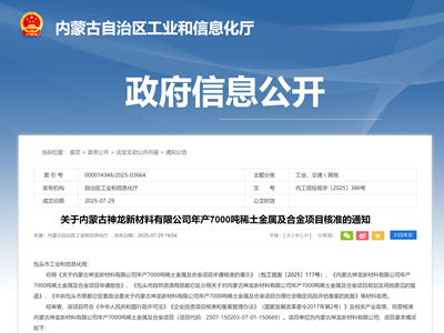 神龙新材?000吨稀土金属项目落地包头昆都仑经开匹/p>2025?7?1?nbsp;更新