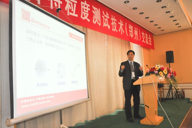 会议由丹东百特仪器有限公司销售服务部经理丛丽华女士主持,她简要回顾了百特与中原地区用户愉快合作的经历,并向中原大地用户致以深深谢意。丹东百特总经理董青云、软件部经理范继来、服务工程师许家东等,分别就激光粒度测试的基本原理与方法、百特最新激光粒度仪—Bettersize2000以及仪器维修保养等方面的内容向与会代表做了报告,并用Bettersize2000 BT-1800、BT-1600 BT-9300S等先进技术产品,为十几家用户测试了一百多个样品,很多代表亲自操作,体验高性能激光粒度仪神奇的智能化系统和精确的测试结果,对百特仪器优良的性能给予积极评价。不仅如此,大家从周到的会议议程安排和详实的会议内容中更感受到了丹东百特人的真诚、周到和友好,感受到了百特为用户提供真诚服务的理念、br/>