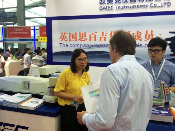 作为中国粒度仪著名的国际化品牌,此次珠海欧美克展位位?号主馆国际区,蓝白相间的主色调,突显欧美克作为高新技术企业给观众以现代化科技感。展览期间,珠海欧美克现场展示了3款全新系列激光粒度仪,分别是珠海欧美克最新推出的全新一代激光粒度分析仪——LS-909、全自动激光粒度分析仪——LS-609和性价比极高的激光粒度分析仪——LS-POP(9)、/span>