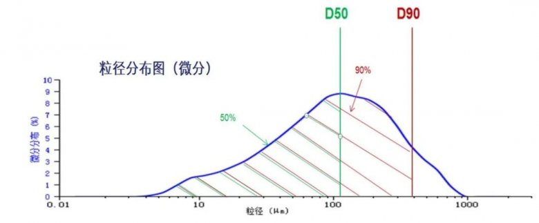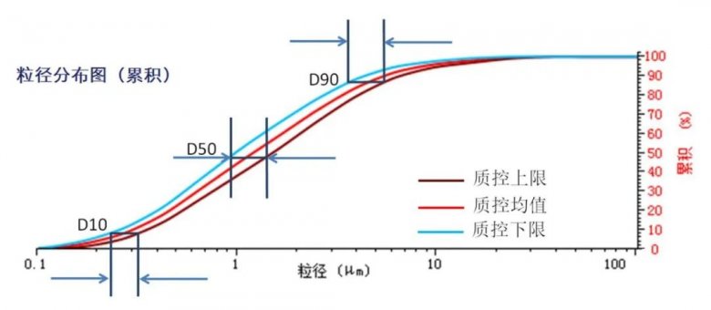 当粒度分析结果用于粉体产品质量判断时,普遍地选取D10、D50、D90这三个特征粒径,分别作为材料中粒径较小、中间和较大的颗粒的代表性粒径数值。通过设定D10、D50、D90的许可范围作为质控依据,可以使实际生产中的粉体材料符合相对应的质量要求,在工业品的来料、过程产品和终产品的质控中发挥着积极的作用、/span>