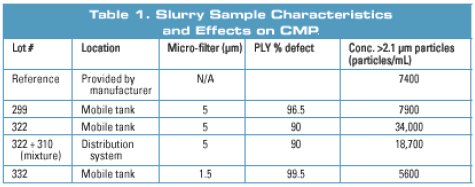 除参考样品外,该列表对应于在工厂中进行的CMP运行的实际顺序。由微划痕揭示的缺陷的第一个迹象出现在299号批中(PLY缺陷的正常水平为96.5%)。将浆料容器更改为批欠span style="font-family:'Times New Roman',serif">322无法解决问题,并且微划痕的数量继续急剧增加。批叶span style="font-family:'Times New Roman',serif">322与新批号310混合在一起,并且?span style="font-family:'Times New Roman',serif">POU上安装了微过滤器,但这并不能立即解决问题。最终,由于再次使用批次322时,微划痕消失了,微过滤器开始起作用。有限的一系列实验的过程结果似乎令人惊讶,特别是当考虑到降低过滤孔隙率并不能立即解决问题时。这意味着可以先验地考虑以下几种原因9/p>
